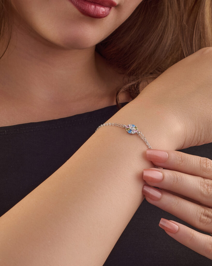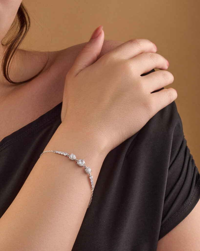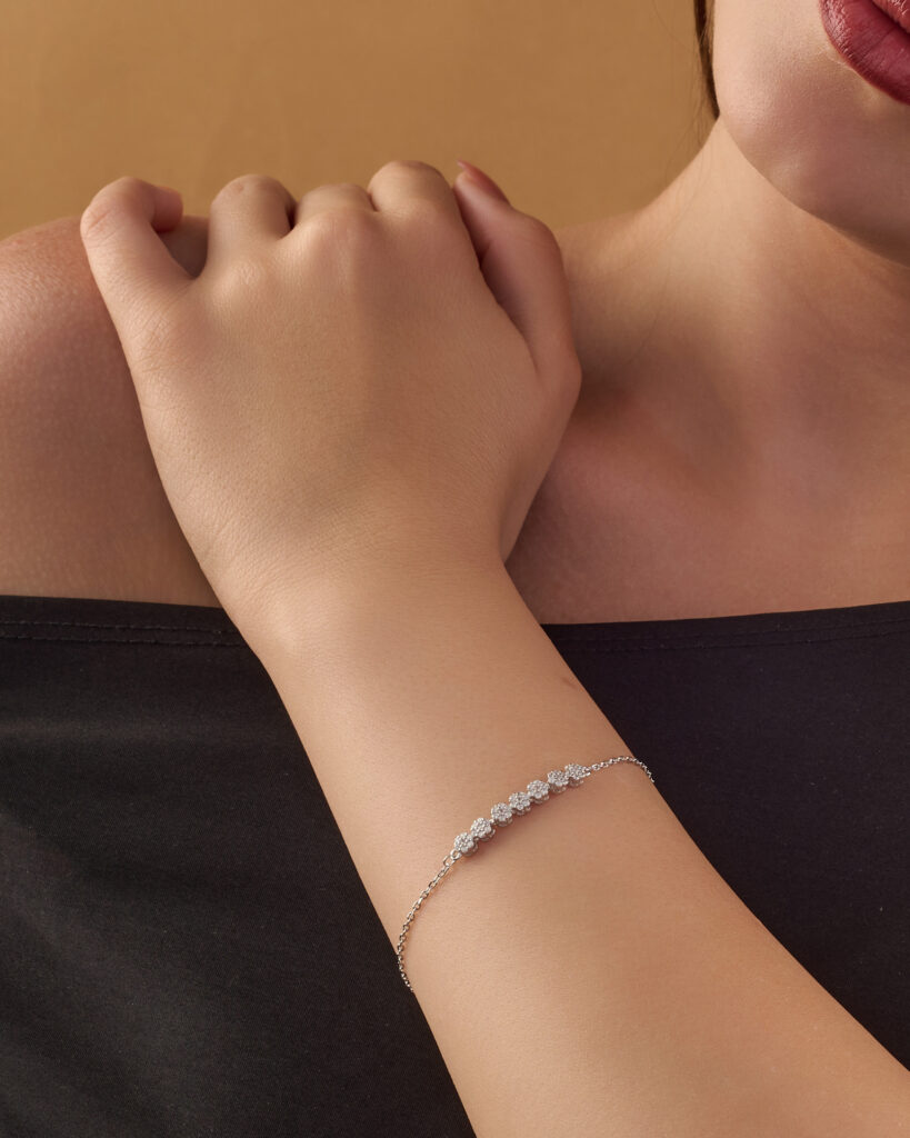 Simple rose-shaped bracelet inlaid with white zircon stones