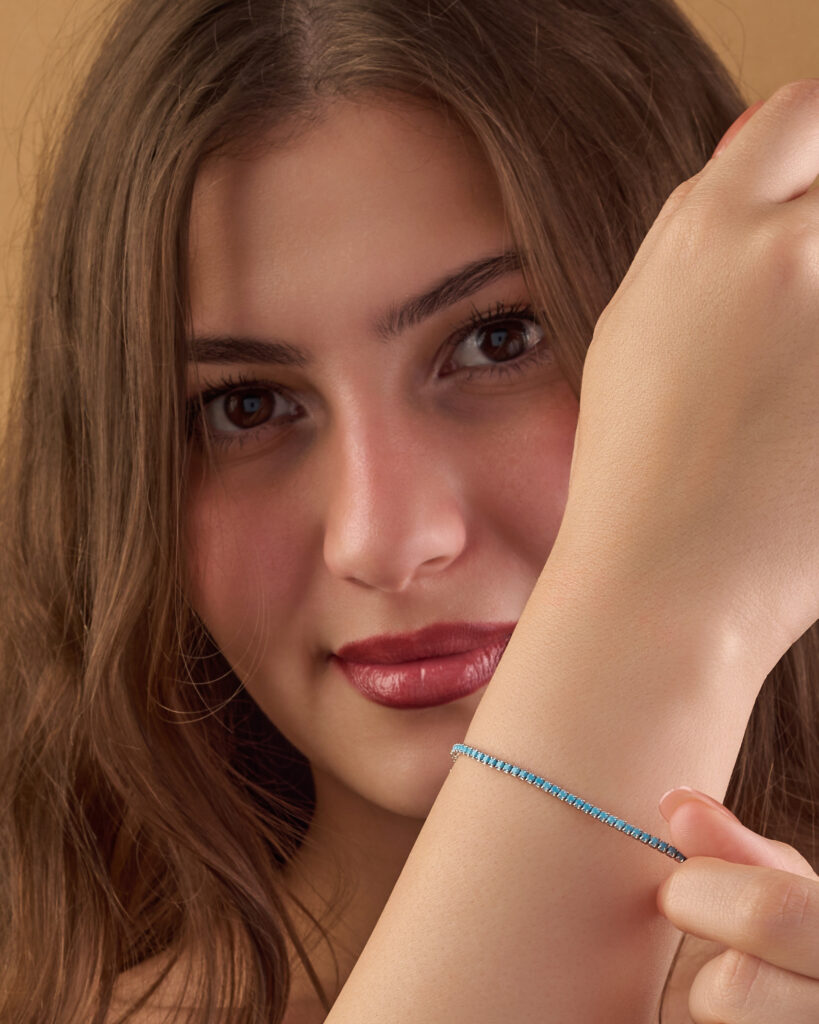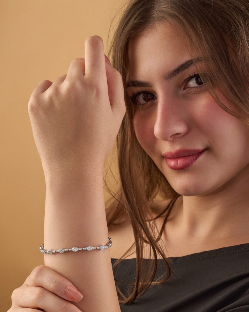 Tennis silver bracelet inlaid with micro-white zircon stones