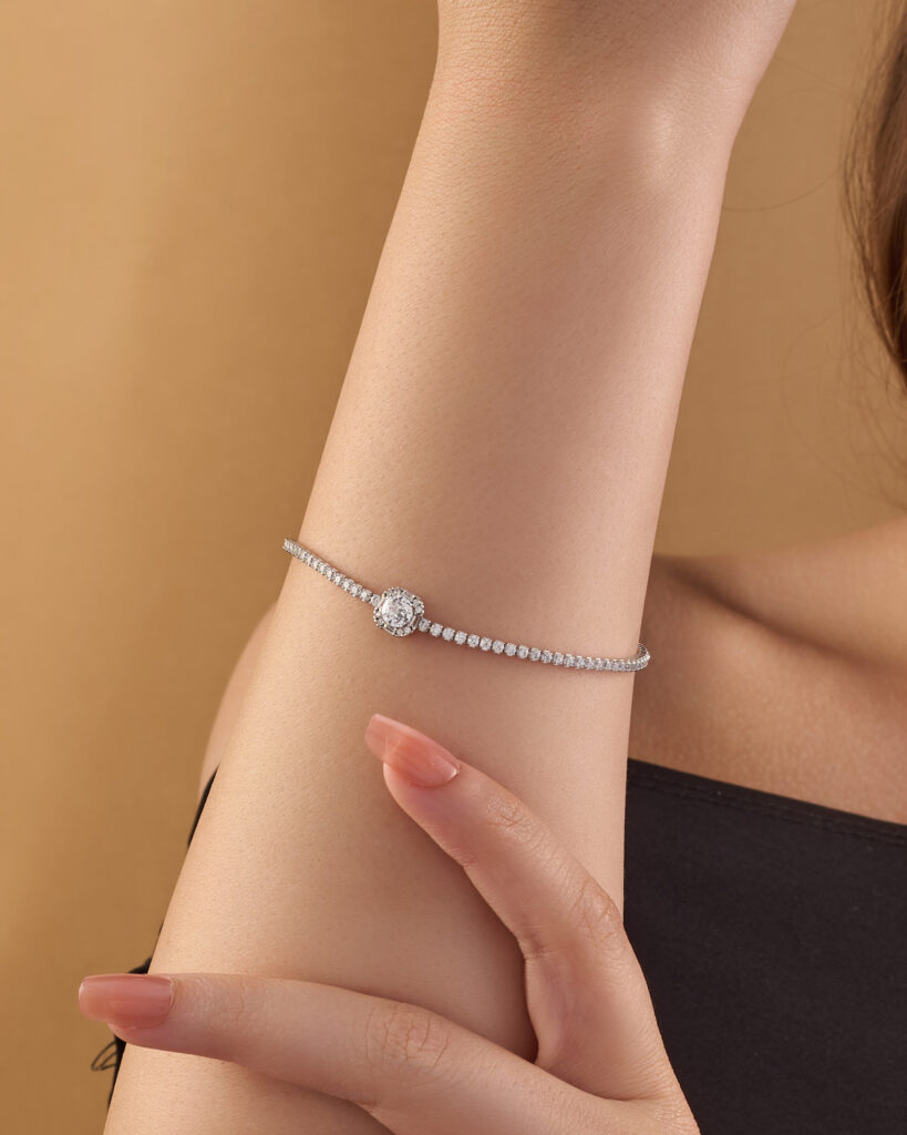 Tennis silver bracelet inlaid with 4mm white zircon stones