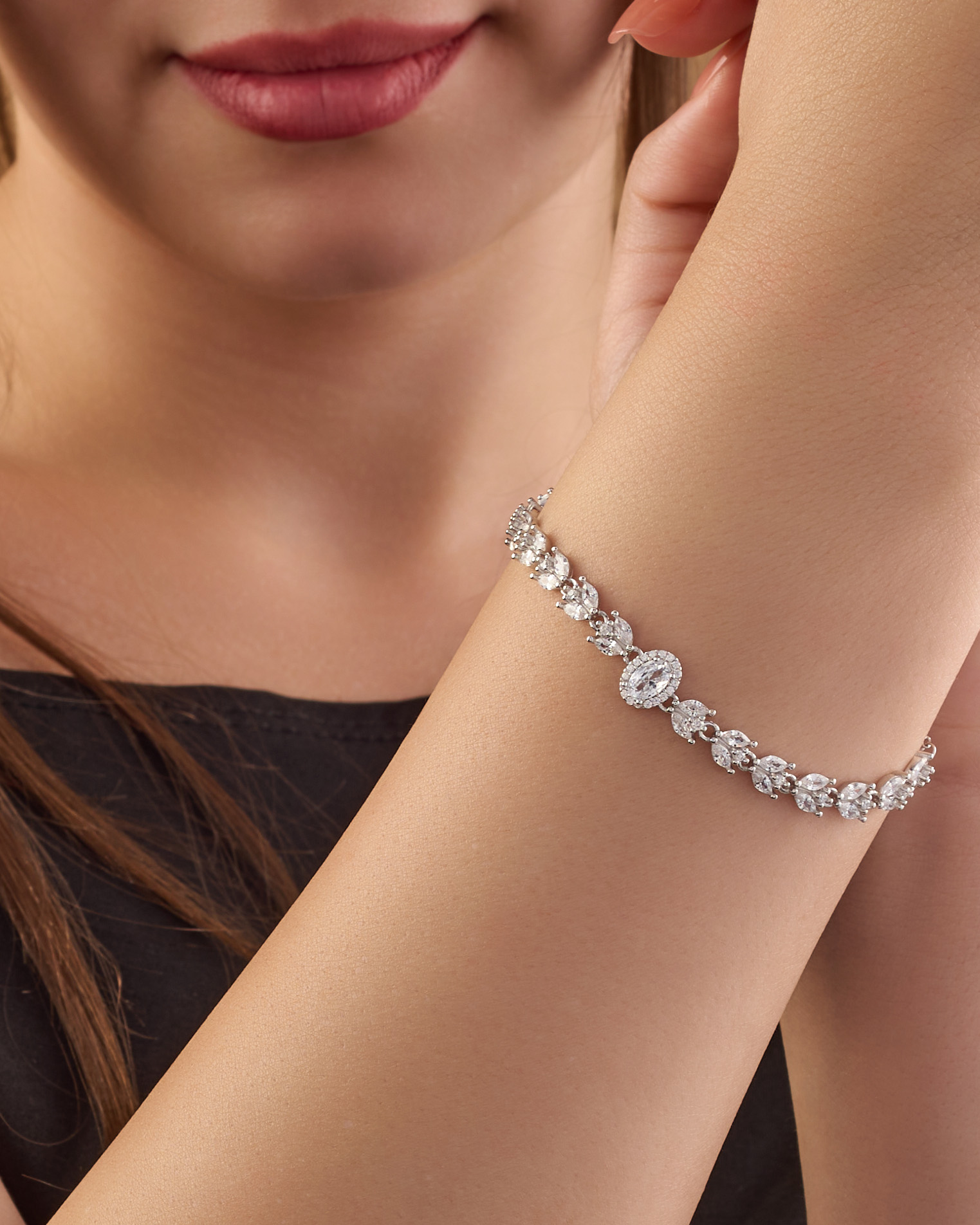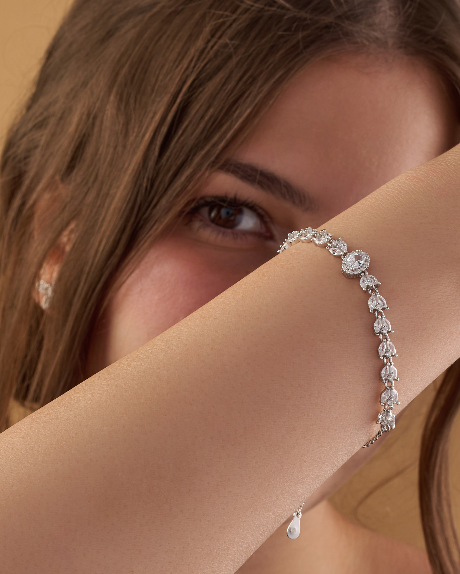 Be the first to review “Oval-shaped silver bracelet inlaid with white zircon stones”