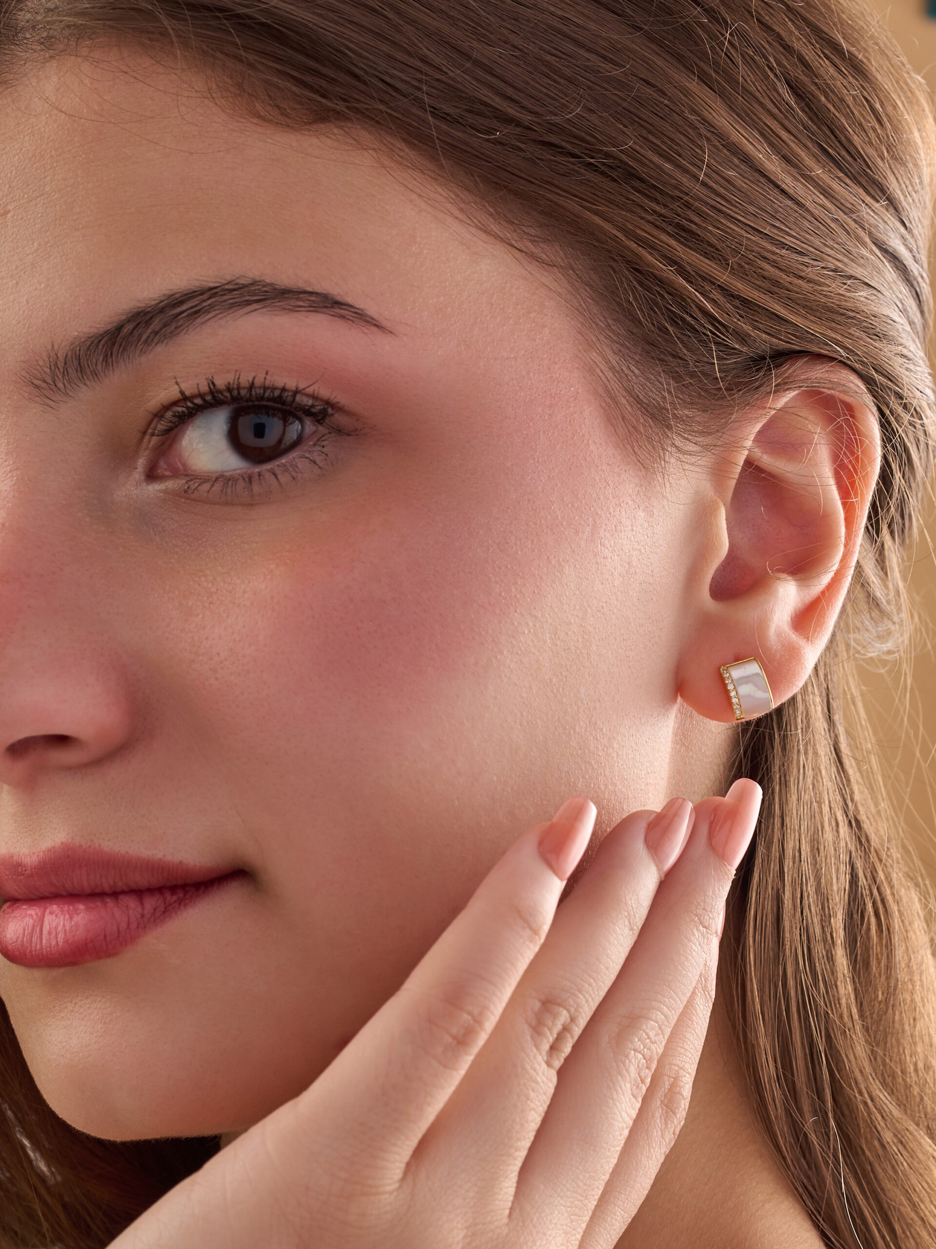 Be the first to review “Silver earrings plated with gold, inlaid with white zircon stones and mother-of-pearl.”