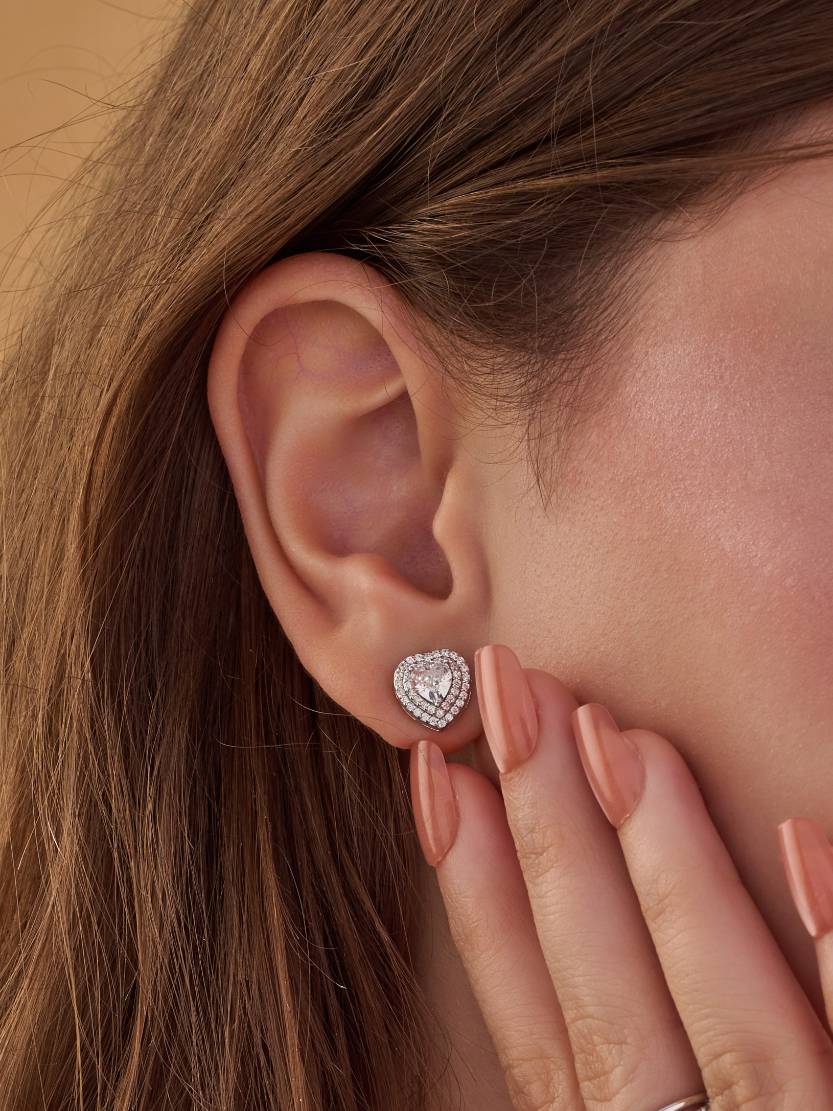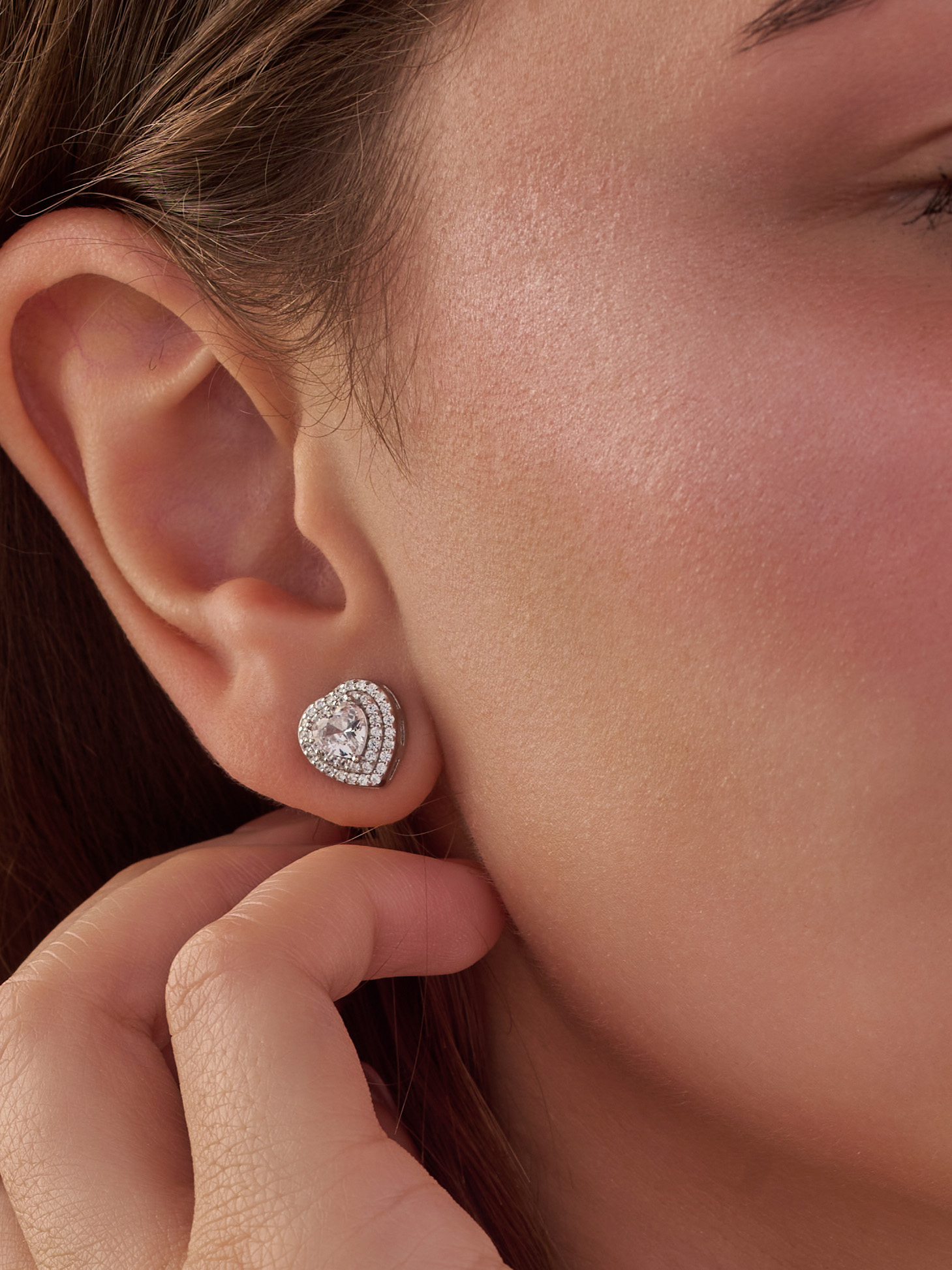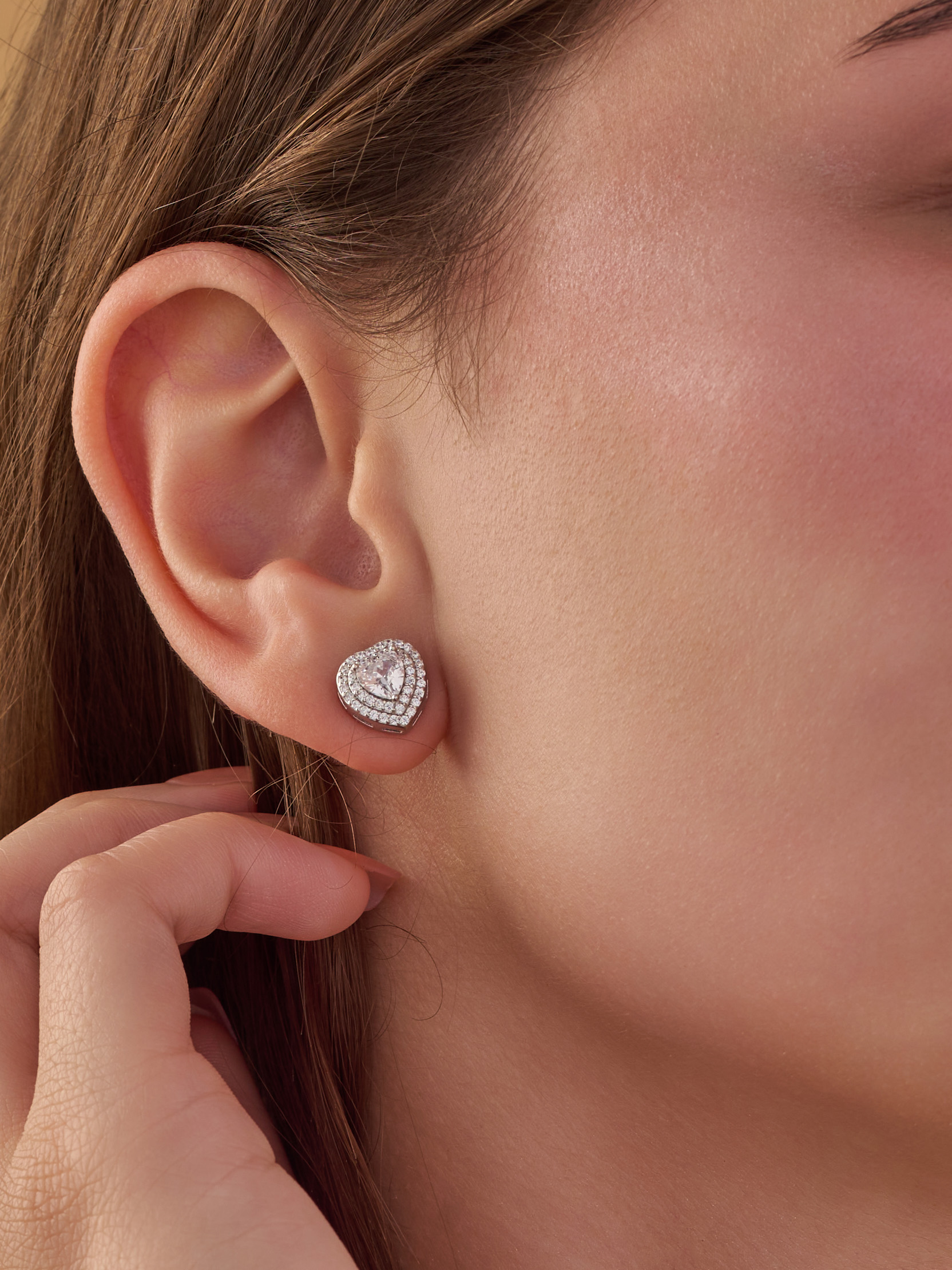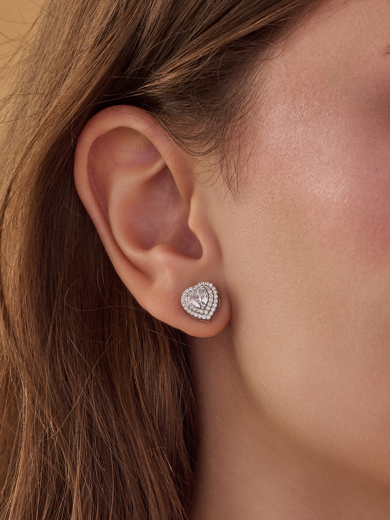 Be the first to review “Silver heart-shaped earring inlaid with white zircon stones”