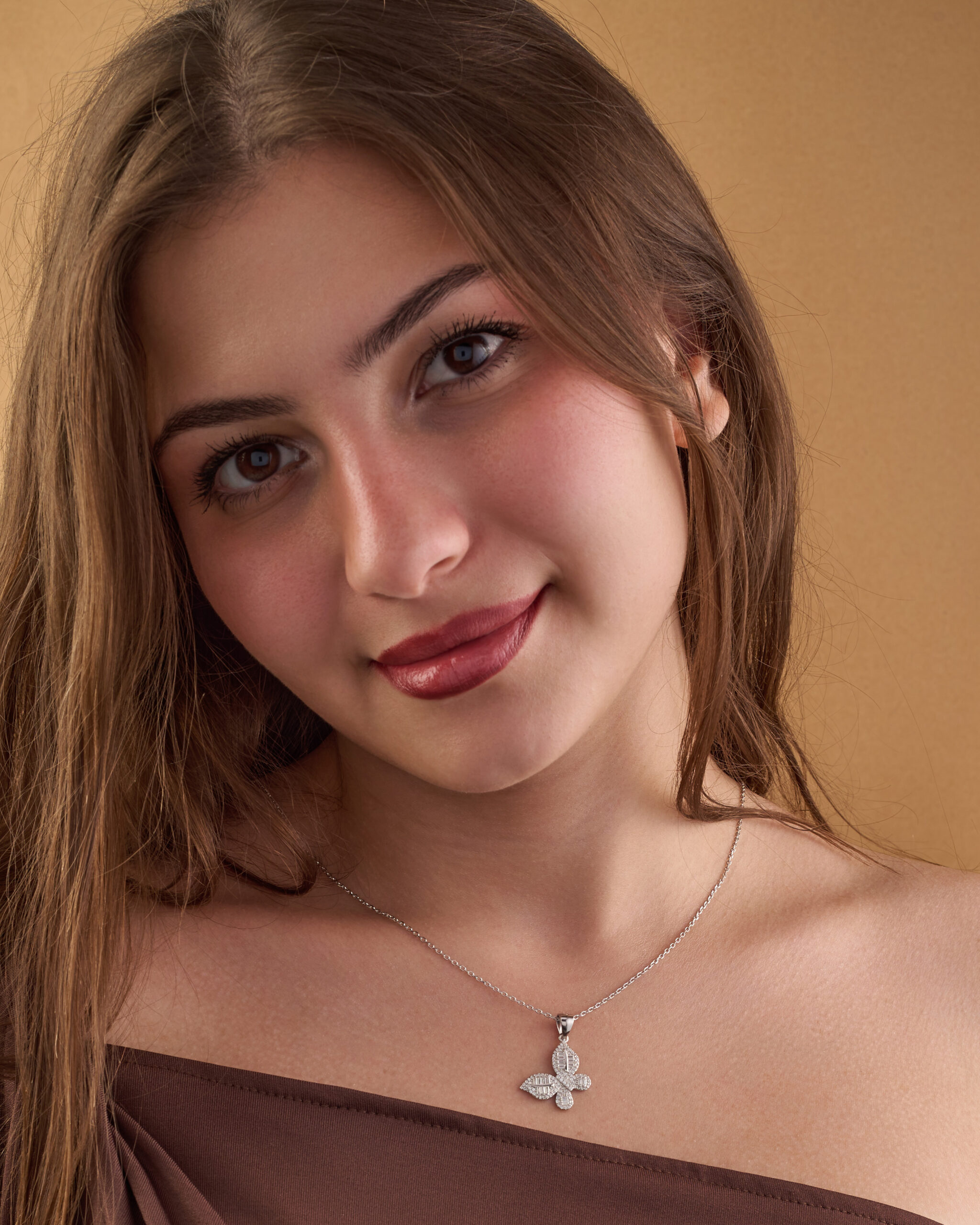 Be the first to review “Simple silver butterfly pendant inlaid with white zircon stones”