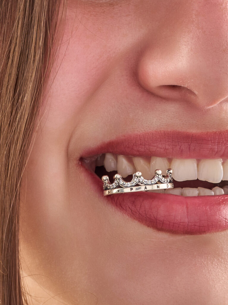 A simple teardrop-shaped ring inlaid with white zircon and blue sapphire stones.